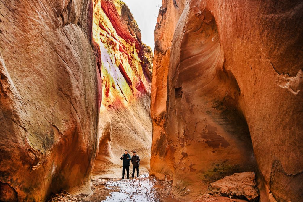 2023年11月11日,陕西延安,游人在猫巷大峡谷恋人峡谷游览。