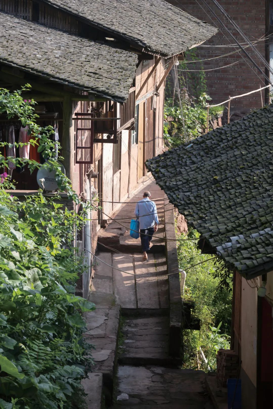 半个小时左右的车程后,我们顺利到达古镇,便直奔集市。在街巷四周有一小块空地,几位老人摆着一只手就能数得过来的菜摊。即使在此之前我已经有了心理准备,到了现场后心中还是一惊,跟预期实在是太不一样,这零星的摊位如何与“赶集”相关联呢?后来我们了解到,大部分具有劳动力的年轻人都搬到了市里,镇上留下的只有为数不多的老人。在市场上有一位老奶奶守着摊位,她一声也不吆喝,也不揽客,只是当有人凑近的时候说:“看下嘛,今天早晨刚刚‘办’的菜,土里头新鲜的。”朴实的话语,像是一颗赤诚的心直接地展示在我们的面前。每次遇到这样的情景,这些质朴的心灵让我不知道可以再多说些什么。