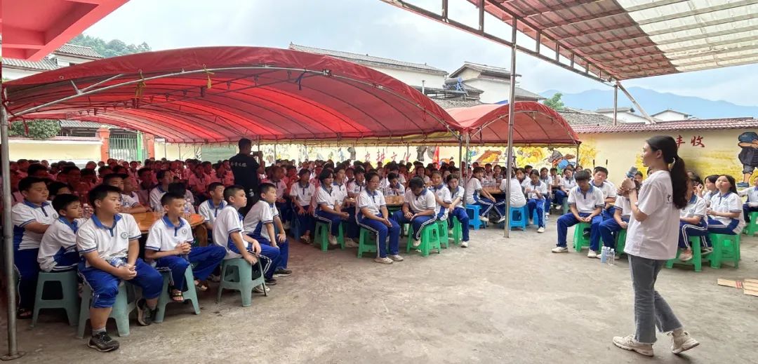 在联奉村时,有一些当地的孩子一直跟着我们走访。虽然我们听不懂方言,但他们的友善、纯真却打动了我们每一个人。在与小升初孩子们交流时,我们每提出一个问题都有孩子积极举手回答,每一次互动结束后又都能收获到热烈的掌声,我们被他们身上的生机——生命最本真的热爱、向往、热情,一次次地感染鼓励。我觉得自己算是一个很有活力的人,可是跟他们在一起,依然不由自主地被原始的生命力所吸引。