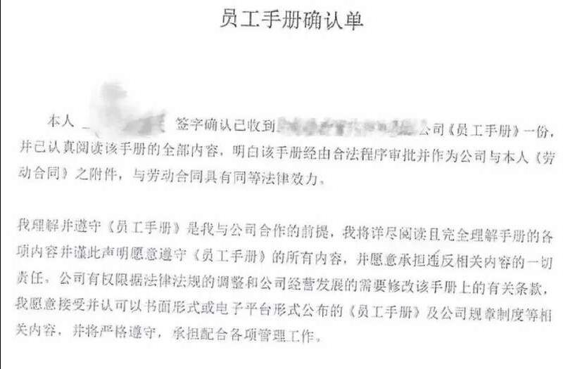 已经小高签字的员工手册确认单中载明“本人小高签字确认已收到B公司《员工手册》一份,我将详尽阅读且完全理解手册的各项内容,并愿意承担违反相关内容的一切责任。”