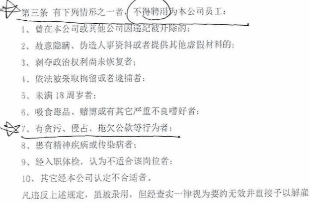 经查,小高在填写入职申请表中工作经历一栏时存在造假行为,工作起止时间完全隐瞒了服刑的经历。B公司的员工手册明确规定,具有贪污、侵占、拖欠公款等行为者不得录用。