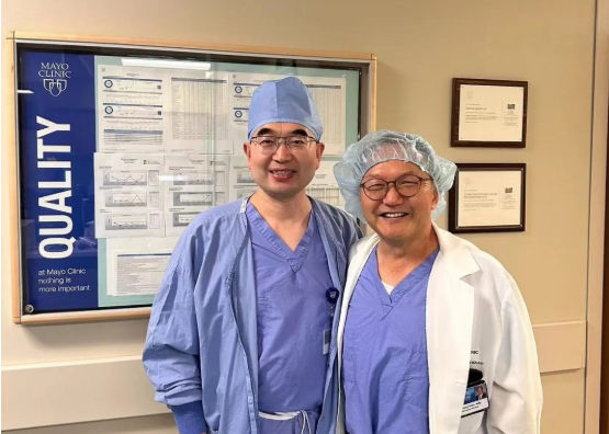 抵达美国后的薛亚军(左)在梅奥医学中心开始工作