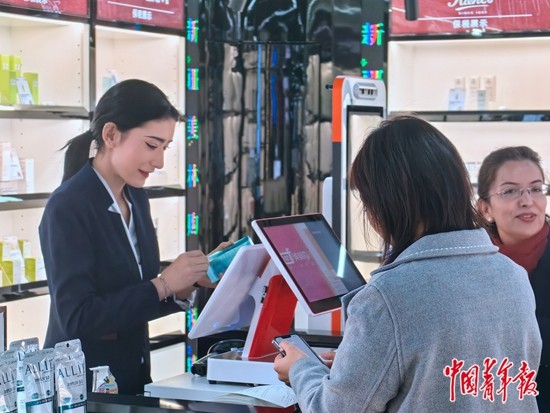 11月5日,顾客在“美林购”线下体验中心购买商品。中青报·中青网记者 王豪/摄