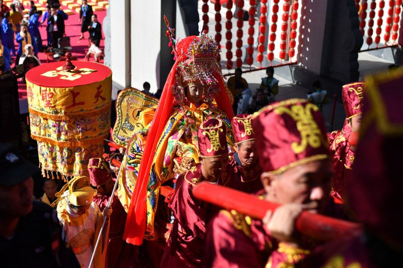 2023年11月18日,福建莆田,第二十五届中国·莆田湄洲妈祖文化旅游节开幕式在湄洲岛天后广场举行,现场举行妈祖祭典活动。 中新社记者 吕明 摄