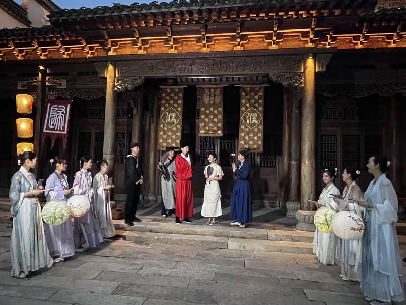 图二:浙江省桐乡市濮院古镇表演“濮侍郎回乡”本土文化戏。 中青报·中青网记者 李剑平/摄