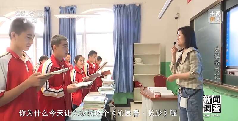 语文教师 李桂枝:艾利库提江,你为什么今天让大家读这个《沁园春·长沙》呢?