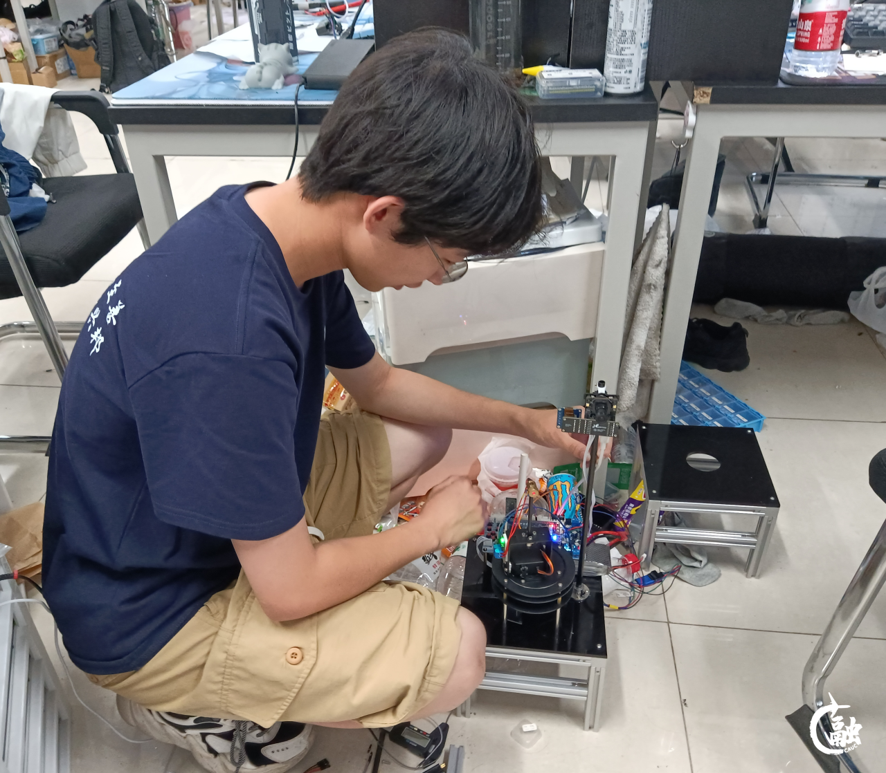 现场,比赛正如火如荼进行,选手们紧张而充满激情地投入到项目的设计与制作中。他们结合自身专业知识积累,发挥创造力和团队协作精神,通过精心设计和巧妙组装,呈现出最终的作品。“比赛结束封箱的那一刻,好困,好累,但也很开心。”卢德诚安回忆道。