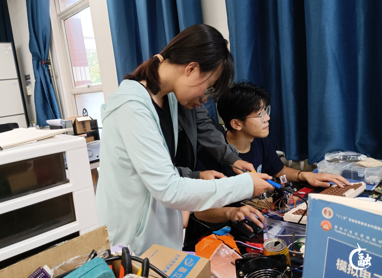 齐心协力,目标一致,充分沟通,共同进步。“三人一组备战全国大学生电子设计竞赛,必须做好团队内部的协调与磨合。”团队指导老师孙艺东说。在一次次训练中,团队也逐渐形成了默契的分工:交通科学与工程学院2021级卢德诚安C语言基础非常扎实,拥有过硬的编程技术,主要负责编程;电子信息与自动化学院2021级吴逸蒙能熟练运用AD进行PCB设计,主要负责完成电路设计(也就是比赛中常说的“画板子”)以及硬件调试工作;航空工程学院2022级张馨玥动手能力强、焊接技术好,负责焊接以及报告撰写工作,并能运用C#辅助编程。
