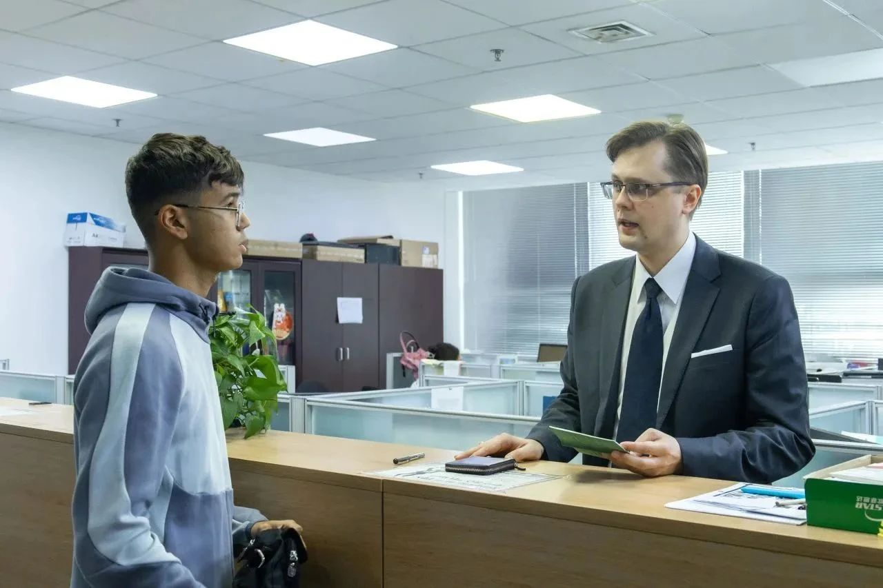 初见伊万,他正与两名来对外经济贸易大学(以下简称“贸大”)学习汉语的土库曼斯坦学生进行交流,西装笔挺的身姿、谦逊礼貌的态度、细致专业的解答是伊万留给大家的最初印象。为学生办理好报到手续后,伊万说:“今年有很多来自中亚国家的学生来到贸大学习汉语,这表明共建‘一带一路’倡议让中国和共建国家间的关系越来越密切。”
