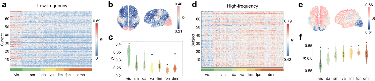 图2:低频和高频特征模对大脑结构-功能耦合的区域异质性作用