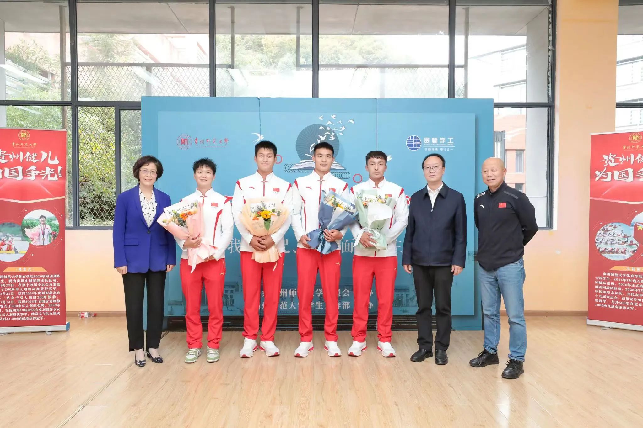 肖远平在分享交流中回答了同学们提出的问题,并表达了对同学们的深深牵挂和浓浓关怀,同时他代表学校向贵师大健儿载誉归来表示祝贺,为他们在杭州亚运会赛场上奋力拼搏、为国争光、为校添彩表示感谢,向为他们的成长付出辛劳、默默奉献的老师们、教练员们表示敬意!他指出,体育是提高人民健康水平的重要途径,也是实现中国梦的重要内容,能为强国建设、民族复兴提供凝心聚气的强大精神力量,体育强则中国强,体育兴则国运兴。近年来,学校高度重视体育工作,将其作为落实立德树人根本任务、提升师生综合素质的基础性工程,多措并举、多管齐下,以田径运动会、体育文化艺术节、环校园健身跑活动等为抓手,引导师生在体育锻炼中健全人格、锤炼意志,大力弘扬中华体育精神,进一步增强民族自尊心、自信心和自豪感。