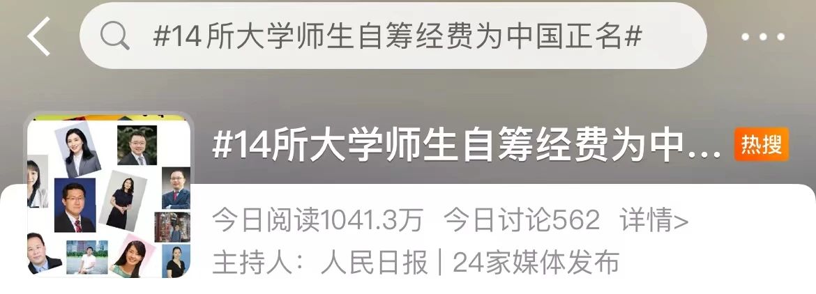 近日,话题#14所大学师生自筹经费为中国正名#冲上热搜。