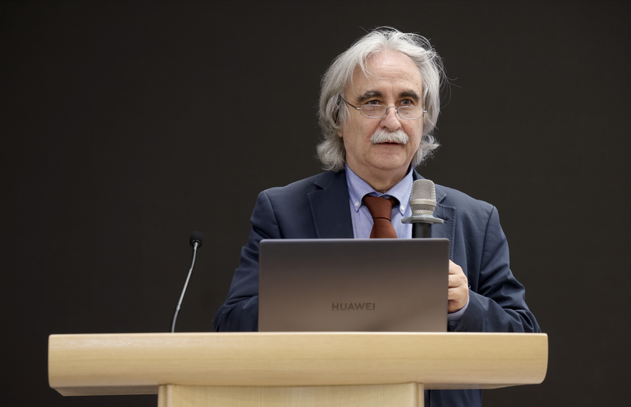 本次“清美”讲堂的主讲嘉宾为欧洲科学与艺术院院士、英国皇家艺术学会院士,曾担任塞浦路斯欧洲大学校长的科斯塔斯·古利亚莫斯教授。