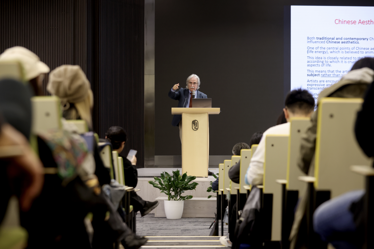 由齐白石引入,科斯塔斯教授探讨了中国美学的概念。他认为 中国美学强调生命、能量、平衡与和谐、象征与隐喻,中国传统哲学对中国美学及西方古典哲学都产生了很深的影响。