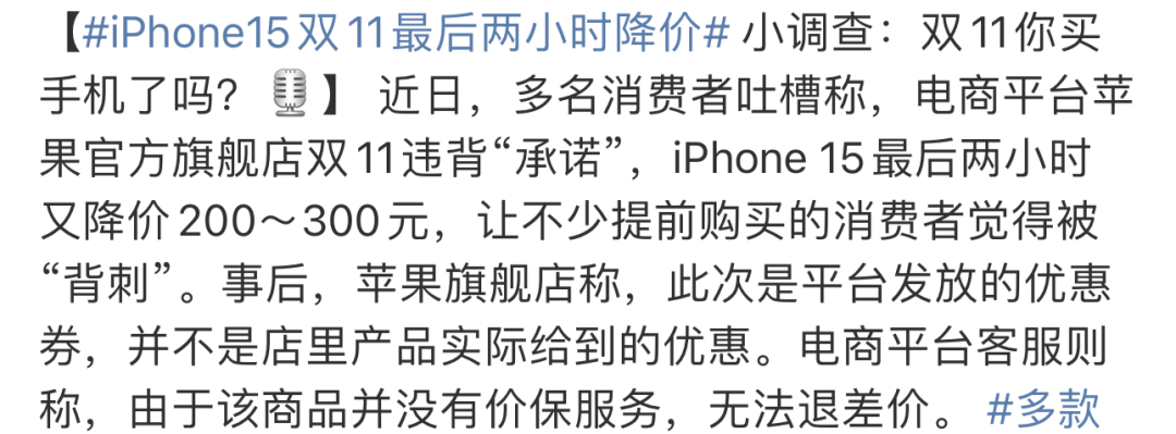 例:iPhone15“双11”最后两小时降价