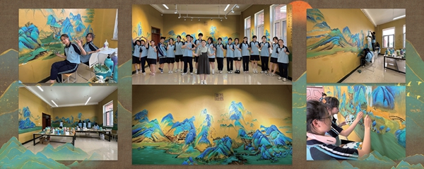 最近,长春市第一五〇中学伯虎画社的21名高中生以美术教室的墙壁为画布,用浮雕壁画的形式,截取呈现了北宋画家王希孟《千里江山图》中内容非常丰富的一部分。完成后的《千里江山图》浮雕壁画高近3.5米,总长度11米。推开美术教室的门,青绿山水扑面而来,颇有气势。