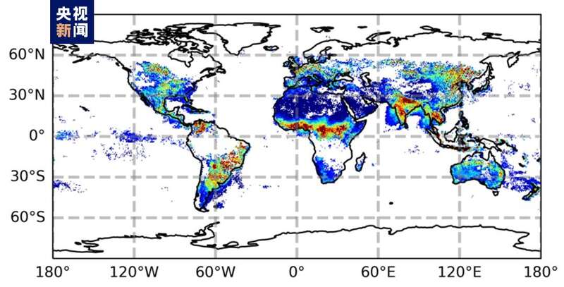 △2020年1月FY-3D/HIRAS卫星观测的全球白天NH3柱总量浓度分布图