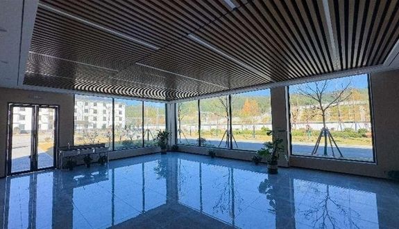 项目经理部开工伊始便明确目标,要奋力打造标志性综合工区。在建设单位的大力支持下,项目部精心策划,对工区整体布局、绿化排布、食堂装修深化设计等反复推敲,请景观设计和铁路局站段相关专家召开方案论证会,形成一套经济合理、绿色温馨的方案,三个方面有突破性创新。一是将工区食堂外墙深化成开放式幕墙,与院外绿化和群山自然景色通视。二是工区房屋布局重新调整,将综合楼与线路平行向西侧平移,门卫向南侧平移,使得工区院落更加宽畅,道路和绿化整体性更强。三是打造立体绿化与音响系统,绿化按“春花秋实,四季常绿”的总原则,高低错落搭配,精心选育种苗,同时将雨水系统隐藏在绿化带内,利用绿化带有利地形,增设室外音响系统,提升“声色俱全”氛围。