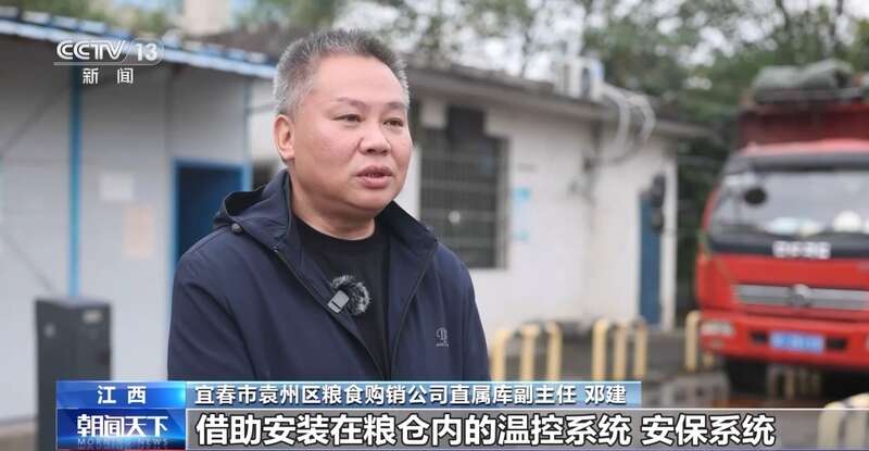 江西宜春袁州区粮食购销公司直属库副主任 邓建:借助安装在粮仓内的温控系统、安保系统,我们随时能查看粮仓的情况,这样大大保证了粮食的安全。