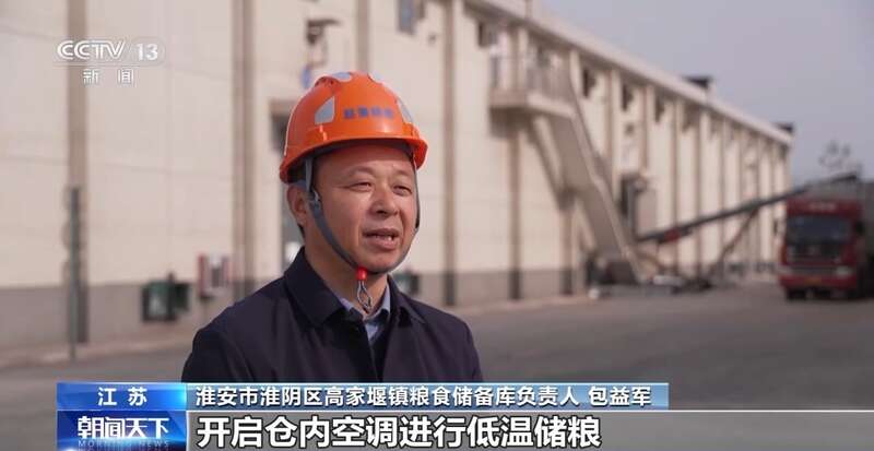 江苏省淮安市淮阴区高家堰镇粮食储备库负责人 包益军:可远程(监测)仓内粮堆温度、湿度等,根据粮情、气候等自动开闭门窗,开启仓内空调进行准低温储粮,保证储粮品质。
