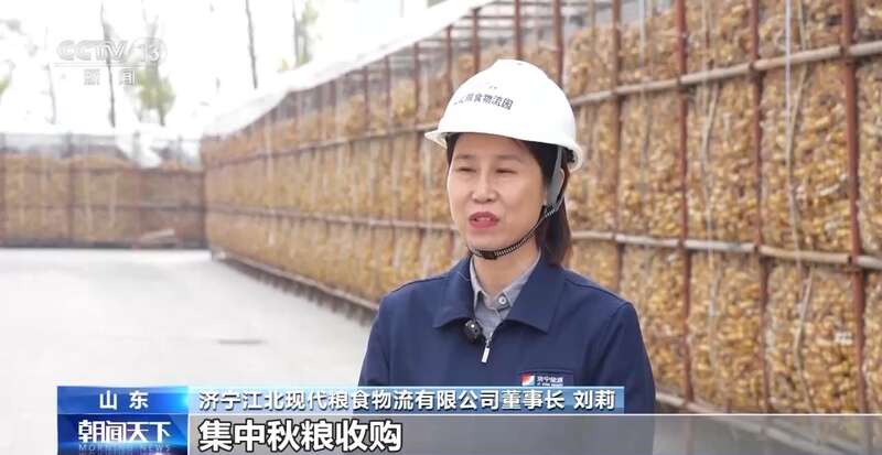 济宁江北现代粮食物流有限公司董事长 刘莉:今年江北粮食物流园开展了集中秋粮收购,支持引导广大农户及其他市场主体积极入园,为当地老百姓提供了收、储、运、销全流程服务,确保了农户种粮卖得出,好粮也卖个好价。