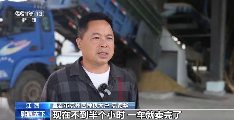 江西宜春袁州区种粮大户 袁德华:以前我们卖稻谷,三到五天才卖得完一车稻谷,现在不到半个小时,一车就卖完了,卖完了,这个钱很快就打到我们账上来了,很快,很方便。