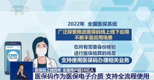 2022年,以全国统一的医保信息平台全面上线为契机,全国医保系统广泛探索推进医保码线上线下应用,不断丰富应用场景,在所有需要身份核验、进行医保结算的场景,支持使用医保码办理相关业务,实现医保码全流程应用。医保码已经逐步实现“全场景通”“全流程通”“全国通”。