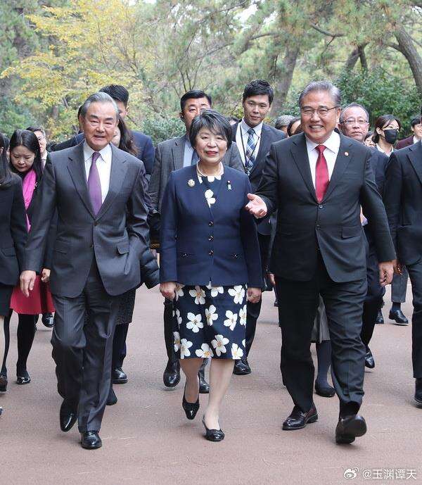 在过去的周末,中日韩开展密集互动,三国外长举行三场双边会见,一场三边会见。