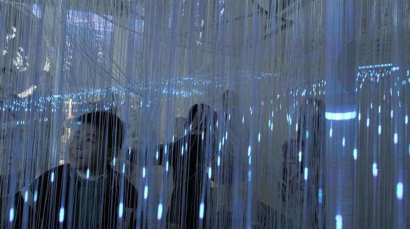 展览现场,由1743根渔线搭建的“重返海洋”装置,在光影变幻中潮涨潮落,观众一走进去,就会被鱼线缠绕,亲身体会被塑料垃圾缠绕的窒息感。“深海明灯”团队表示,严肃的科研数据很难触动大众,他们希望用创新的表达带来身临其境的感受。