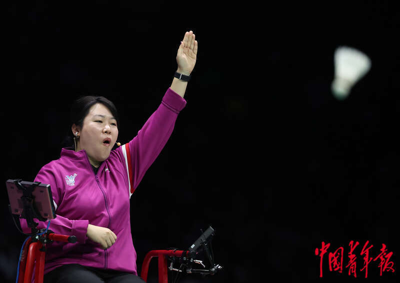11月26日,广东深圳,深圳湾体育中心,2023李宁·中国羽毛球大师赛混双决赛,韩国混双选手蔡侑玎在比赛遗憾错失好球。刘占崑/摄