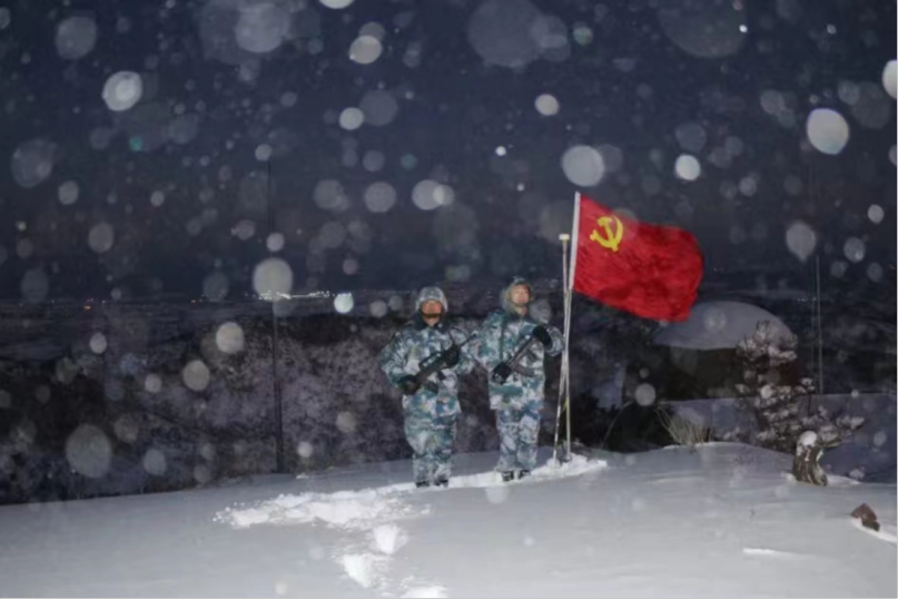 除去训练,一般没有重大的任务的时候,部队还会经常跟驻地群众开展帮扶共建工作。重阳节来临之际,李政睿和战友去到驻地老人家中帮忙收拾卫生,驻地血液库存告急时,他们会主动去采血库献出热血。2022年下连之后,连降数场大雪,山上老乡的农作物被积雪覆盖,如不及时清理,第二年很可能收成不保。于是,连队紧急组织起队伍去帮助老乡清扫积雪。老乡拿了冻梨冻柿子给战士,他们不拿。但老乡一再坚持要给,后来指导员说,“党员不能拿,其他同志一人拿一个”。“军民鱼水情”不再是课本、新闻上的五个字,是人们群众真的通过他们的行动拥军、爱军,驻地官兵也力所能及地帮助群众的生动实践。红色血脉在日常生活中赓续,入党的种子在这一刻萌发。入伍第一年,李政睿递交了入党申请书,因为表现优异,第二年里他如愿成为了一名光荣的义务兵党员。在部队,党员身份是对战士工作表现极高的认可,因为党员讲“奉献”,奉献就是对他们日常工作的最好注脚。