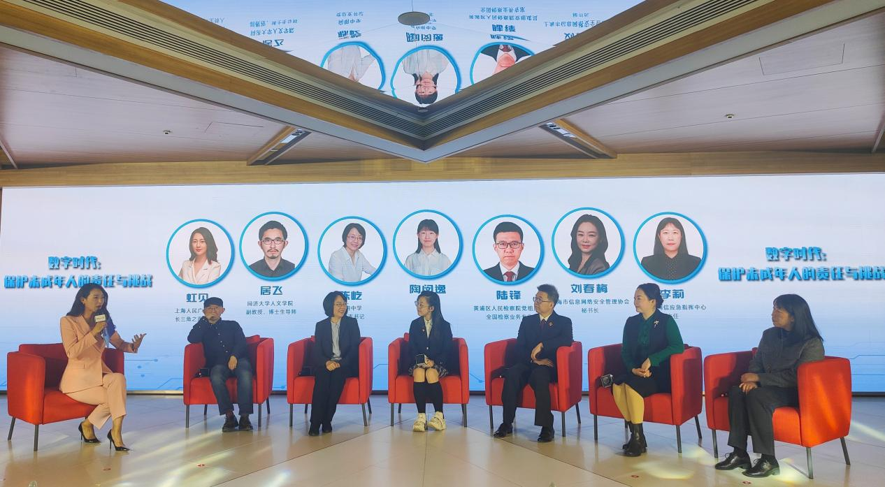 向明中学学生代表陶闵逸从自身经历出发,表达了“10后”孩子真实的心声和想法。论坛嘉宾共同就情景短剧引出的矛盾焦点展开了讨论:同济大学人文学院心理学系副教授、博士生导师居飞从专业角度分析了未成年人上网行为背后的多种因素;向明中学党总支书记陈屹倡导家校共育,引导孩子做时间管理的主人,建议家长适当地放权,让孩子感受到被信任,才能平等沟通、协商解决在网络中遇到的问题;黄浦区检察院党组成员、全国检察业务专家陆锋注重未成年人网络保护综合履职,协同各方做好源头预防、诉源治理;上海市信息网络安全管理协会秘书长刘春梅表示将继续牵头行业内协会会员加强自律;黄浦区网信应急指挥中心主任李莉介绍了网信部门贴合青少年实际,为他们量身定制的网络安全宣传系列活动。