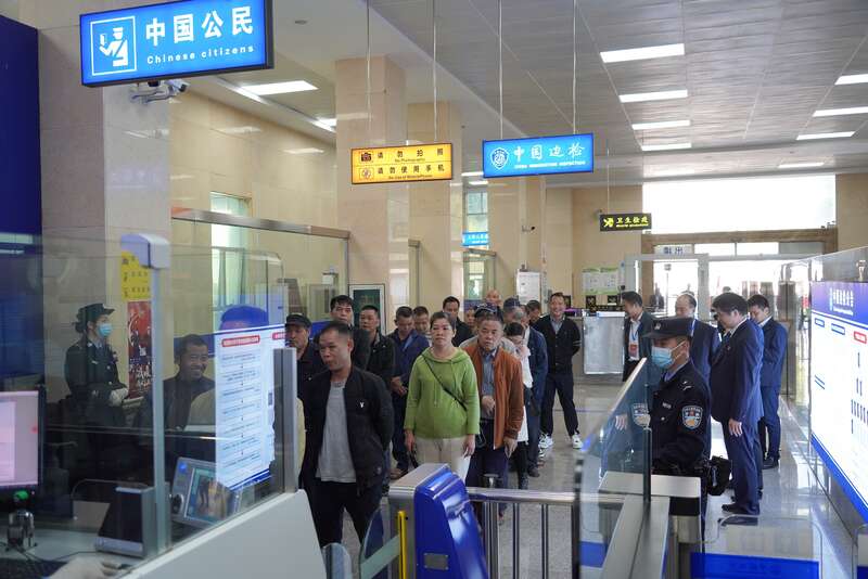 当天10时,双方口岸正式启动通关,前来准备办理出入境手续的旅客排成长队。平孟出入境边防检查站移民管理警察已提前做好通关查验前期准备工作。在入境通道,专门安排移民管理警察指导入境旅客填写入境卡,引导他们前往验证台办理入境手续,确保旅客出入境有序安全顺畅。直至当日下午,依然有不少旅客在排队办理出入境手续。