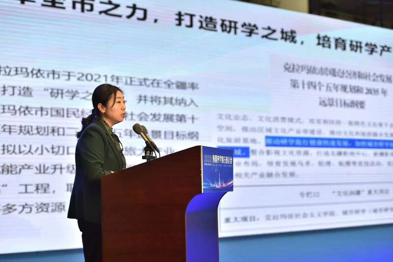 克拉玛依市文体旅游局局长王晓佳分享打造“研学之城”经验。上海井上书文化发展中心供图