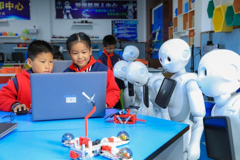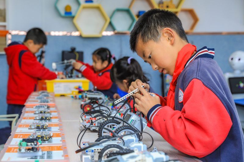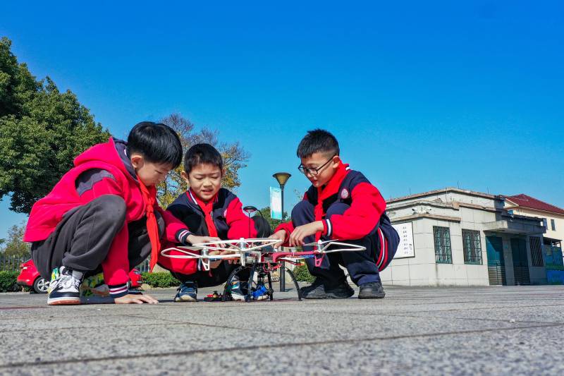 在这所农村小学,学生们通过使用无人机、智能小车、乐高机器人、虚拟机器人(萝卜圈)等多种人工智能设备和编程工具,拓宽视野和思维,培养创新和探究能力。该县教育局响应国家关于推动人工智能与教育深度融合、促进教育变革创新的号召,制定并实施的一系列人工智能教育的发展规划和方案,为农村人工智能教育提供了更多的技术和资源支持,为农村教育注入了新的活力和动力,努力缩小城乡教育差距,将人工智能的“种子”播撒到农村校园。