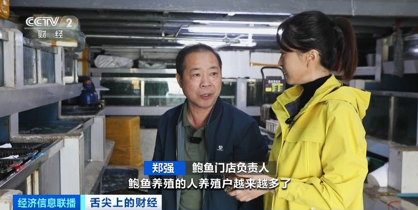 鲍鱼门店负责人 郑强:鲍鱼养殖户越来越多了,整体价格现在走下坡。还有一点是因为这几年养殖的技术也慢慢成熟了。