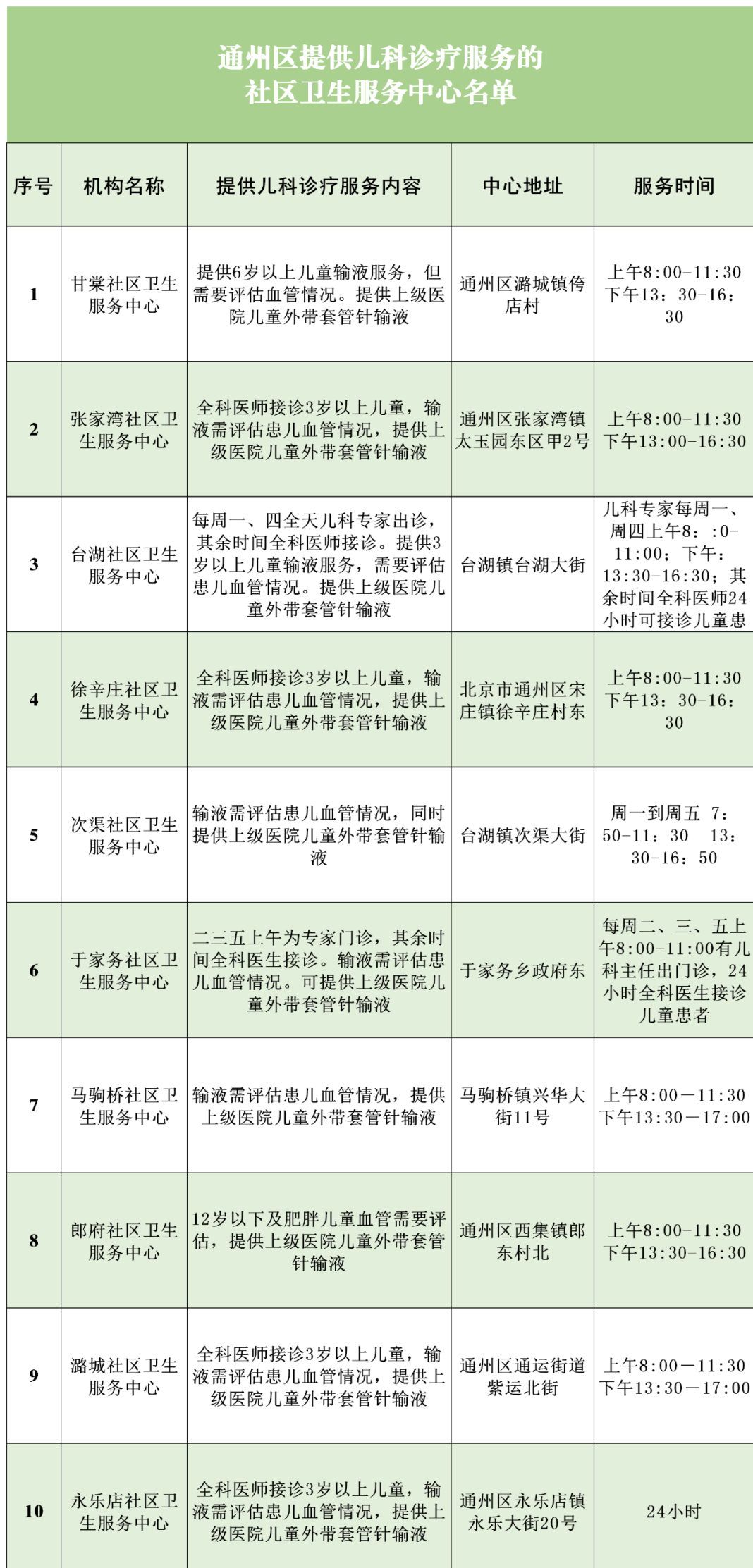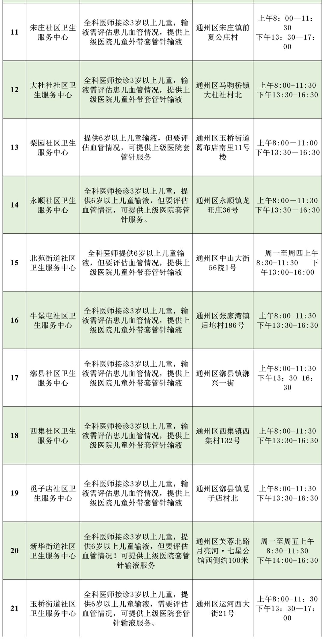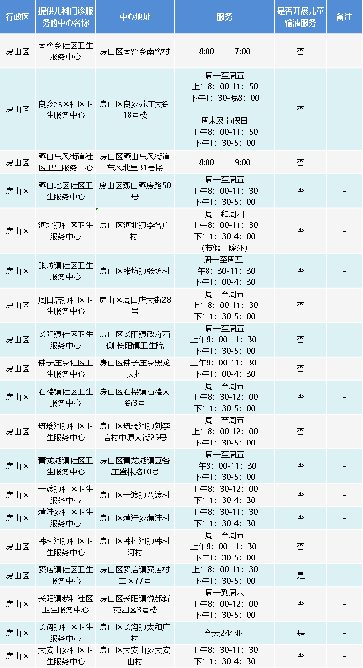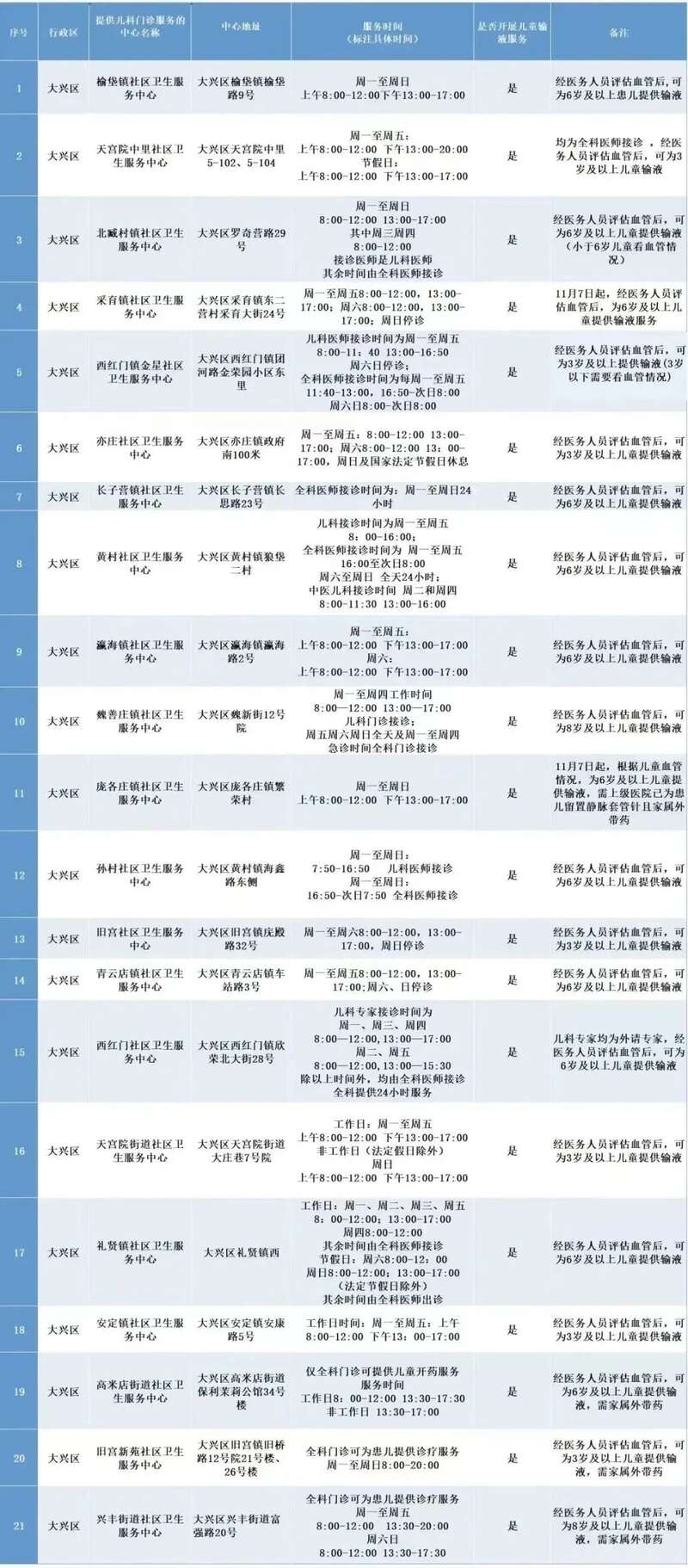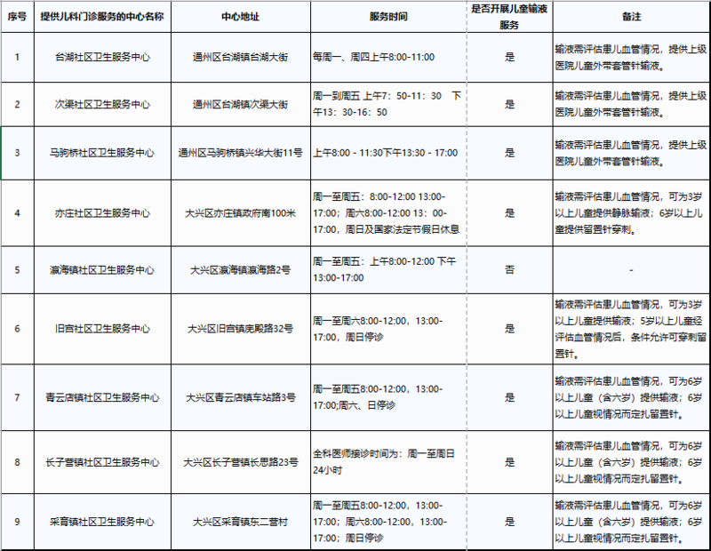 大兴区除青云店镇社区卫生服务中心、安定镇社区卫生服务中心,其他社区卫生服务中心周六日可提供全科门诊服务,详细时间如下: