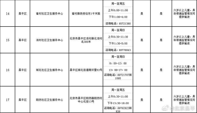 延庆区除四海镇社区卫生服务中心,其他社区卫生服务中心周六日可提供全科门诊服务,详细时间如下: