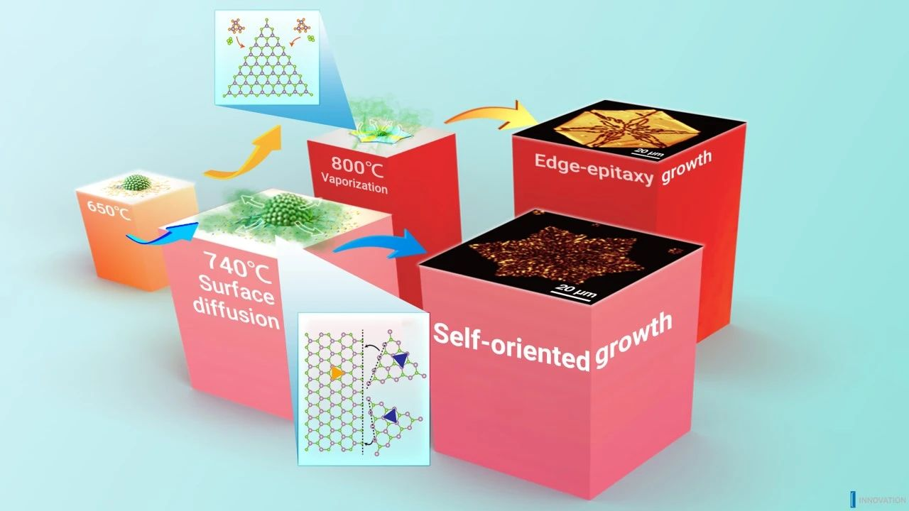 相关研究成果以“Non-epitaxial growth of highly oriented transition metal dichalcogenides with density-controlled twin boundaries”为题发表于The Innovation。国科大特别研究助理朱俊桐、南京航空航天大学教授张助华、新加坡南洋理工大学教授刘政、国科大物理科学学院教授周武为共同通讯作者。国科大特别研究助理罗瑞春、直博生庞靖博和李昂参与了研究。