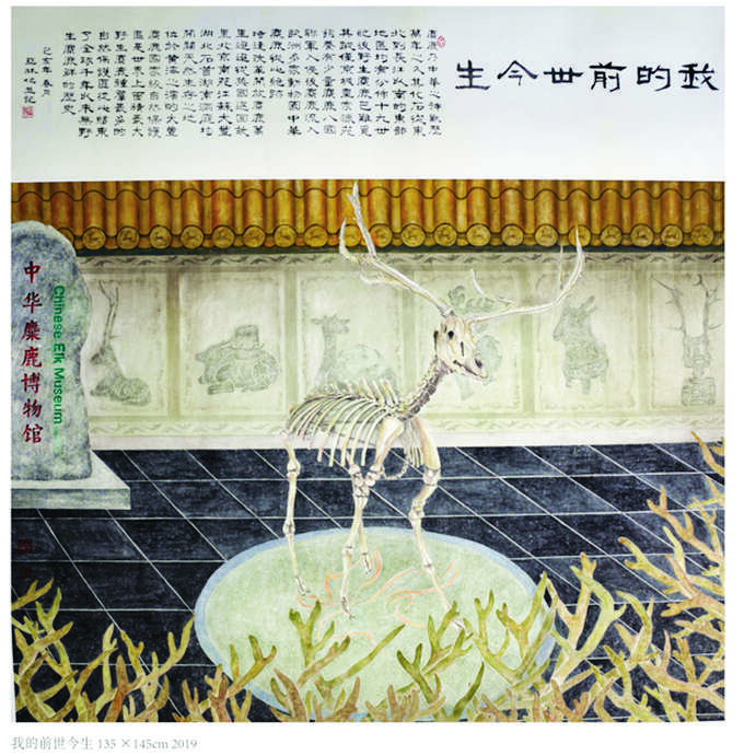 故宫的“时空维度”是600年左右,而嵇亚林的“文博中国画”贯穿整个人类时长。“文化张力”,故宫的“文物”受其特定历史时代的科技、文化、教育、军事等的影响和感通。而“文博中国画”的“文化张力”是人类文化的积累、发展和交融,你所看到画作现象的那一个时刻,不是孤立的,而是现象背后一点一滴的辗转曲折和千丝万缕,人类学、历史学、文化学、经济学、国学、伦理学等相融相通。