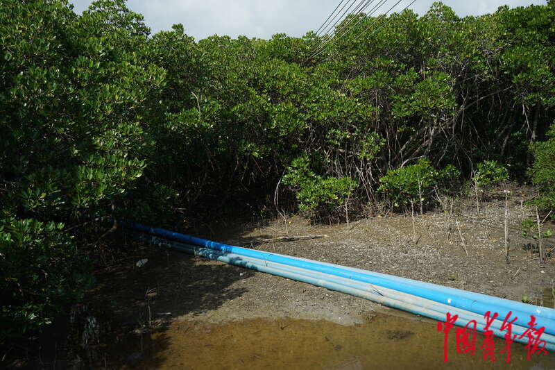 “我们知道红树林好,可以为村庄挡风挡浪。”在李明周的理念里,保护红树林,不砍掉就没问题,取水管穿过保护区似乎没有影响。“拉管的时候,遇到红树林生长的位置,就用弯头绕道避开,我们不动它。”