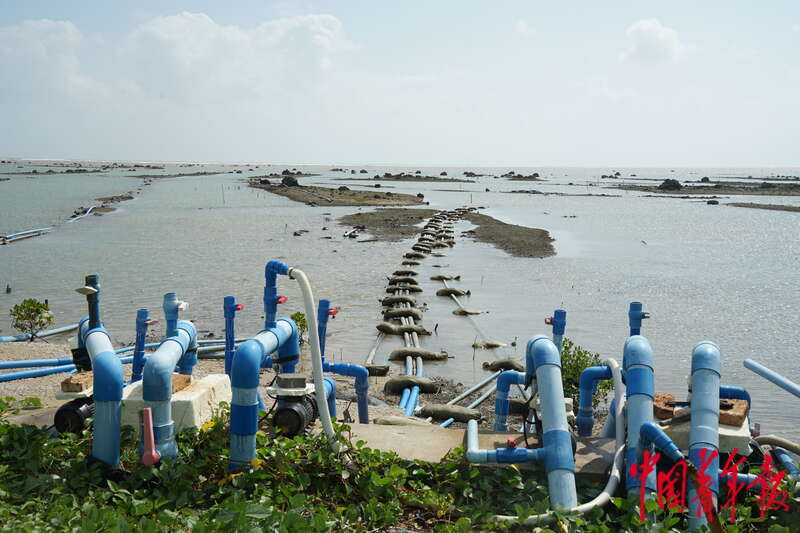 海南省文昌市人大常委会副主任、会文镇党委书记洪忠师介绍,会文镇常住人口约3万人,几乎1/3的人口从事水产养殖业,去年会文镇养殖水产品产值约有16亿元。取水管遍布海滩,“基本上每家养殖户都有约10根这样的水管”。