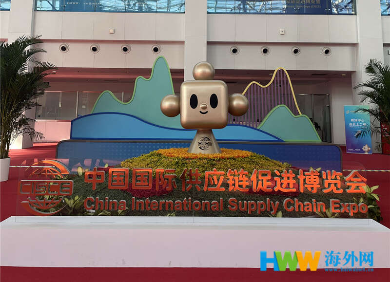 中国国际供应链促进博览会吉祥物“链氪”。(栾雨石/摄)
