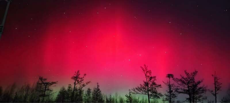 2023年12月1日晚9点18分左右,内蒙古额尔古纳市多地出现极光现象。红色、绿色将天空渲染的绚丽无比,点点星辰在极光中格外耀眼,美轮美奂的天空与白雪覆盖的大地交相辉映,宛若梦境,浪漫至极。