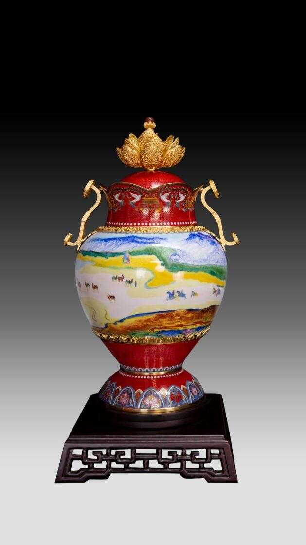 《一路锦绣》山海尊在不久前举办的第三届“一带一路”国际合作高峰论坛上首次亮相。这件作品由不同领域的艺术家跨界合作,中外珐琅美术馆出品,首次将景泰蓝艺术、陶瓷艺术、国画艺术、雕錾艺术、首饰艺术等“五艺”合一。(本文图片均由中外珐琅美术馆提供)