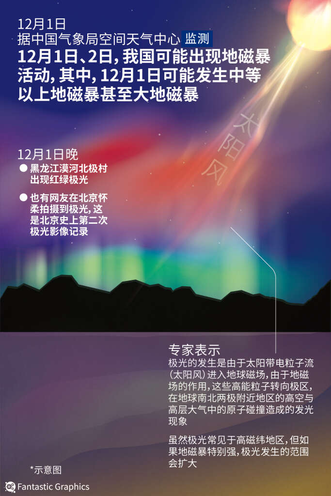 这两天,“极光”刷屏了。北京时间12月1日19时左右,位于我国最北端的漠河再一次出现了明显的极光现象。此后,北京北部也出现了有记录以来的第二次极光,内蒙古额尔古纳市多地首次发现极光现象……不少网民疑问:是什么导致今年漠河经常出现极光,又是什么导致极光“光顾”在北京这样纬度相对而言较低的地区呢?