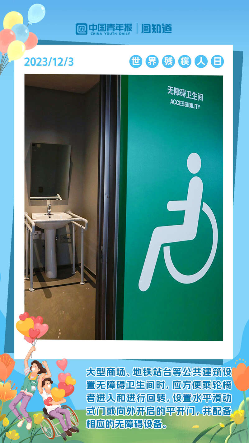 盲道上“长”出自行车,轮椅坡道上堆起杂物,无障碍卫生间成摆设……12月3日是国际残疾人日,你是否留意过身边“无碍”变阻碍的设施?截至2022年年底,全国已竣工的各级残疾人综合服务设施2263个,已竣工各级残疾人康复设施1200个。今年9月,《中华人民共和国无障碍环境建设法》正式施行,为保障无障碍设施提供法律依据。点击图片,一起走近身边的无障碍设施,携手让无障碍设施真正成为残疾人士的爱心设施。