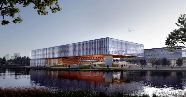 上海交通大学崇明校区占地面积约350亩,规划建筑面积159576平方米,设计方案遵循科技与自然共融的理念,未来将建成一座生态低碳、空间开放共融的共享校园。
