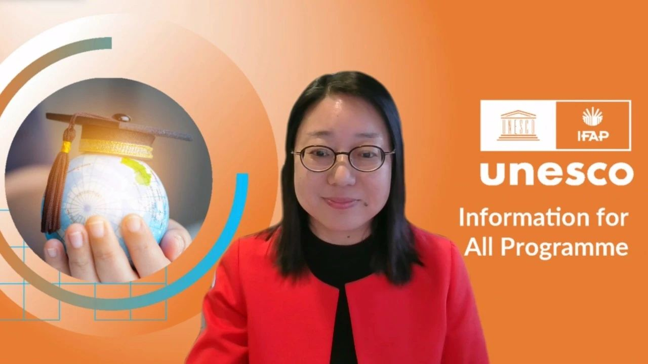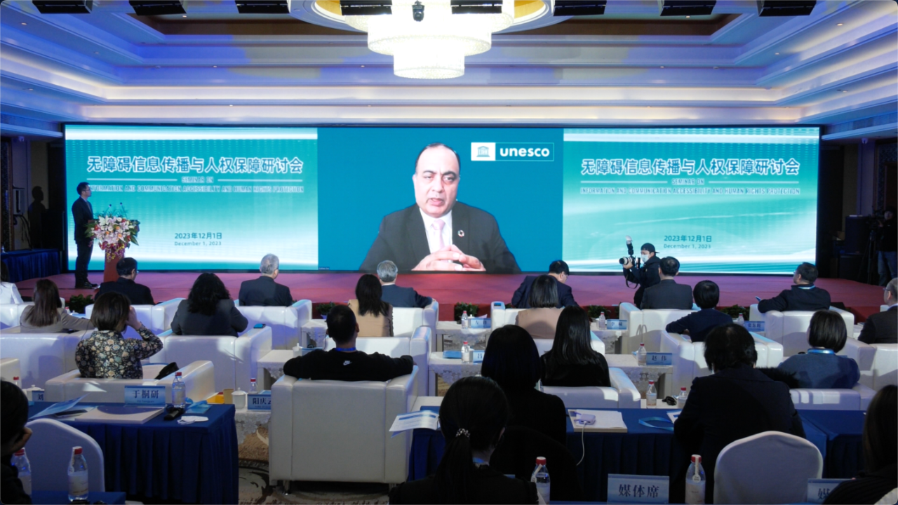 联合国教科文组织信息与传播处项目官员胡献红以“以人道主义和人权为基础的数字化转型方法及有意义的获取——包括残障人士”为题,发表视频演讲。