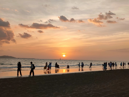 根据身体情况随时调整行程更成了“常规操作”。在海南的其中一天行程里,我们原计划去两个景点。但由于前一天在海滩边走了两万步,我感觉自己的腰椎受不了,于是毅然决定放弃其中一个行程,改去吃了一顿海南特色的糟粕醋火锅,再慢悠悠地回到酒店游泳,顺便查漏补缺打卡了前一天没能去成的椰梦长廊日落,偶遇了玫瑰色晚霞,还认识了两个新朋友,在对方的摄影指导下拍到了“人生照片”。